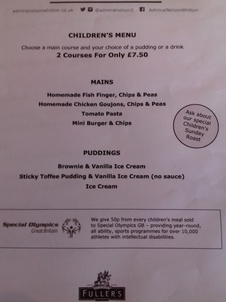 The Admiral Nelson, Twickenham Menu